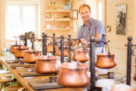 Eine Direktvermarktung der besonderen Art ist das „Schaukäsen“ in den Allgäuer Sennereien. Egal ob in einer „gläsernen“ Käserei, bei der man durch eine Glasscheibe live bei der Käseproduktion dabei sein kann, oder bei eigenen Führungen durch den hauseigenen Betrieb bei denen man dem Käser über die Schulter schaut.