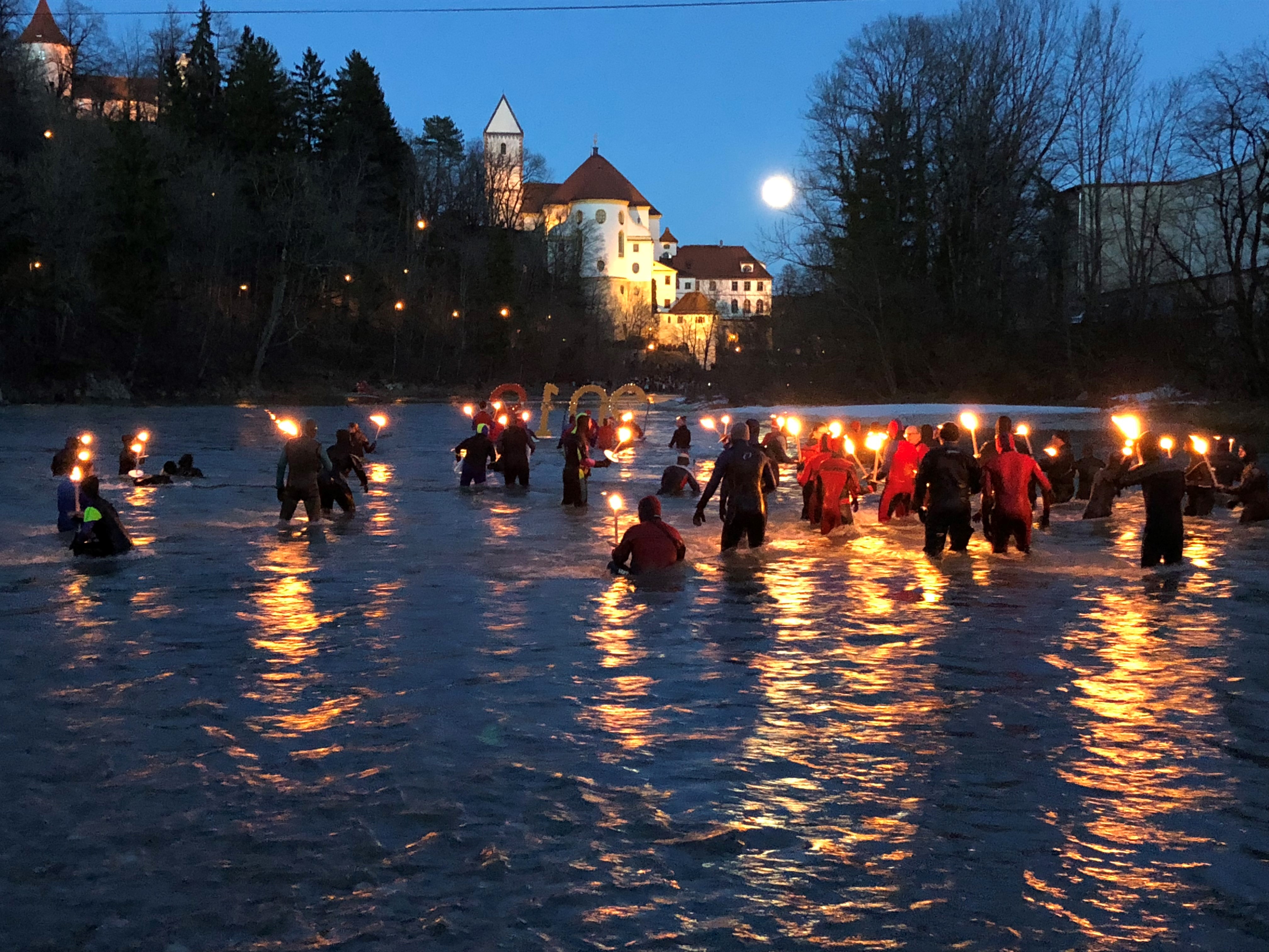 Neujahrs-Fackelschwimmen 2023 (JPG, 8.9 MB). Bildnachweis: Füssen Tourismus und Marketing_Ingrid Yasha Rösner