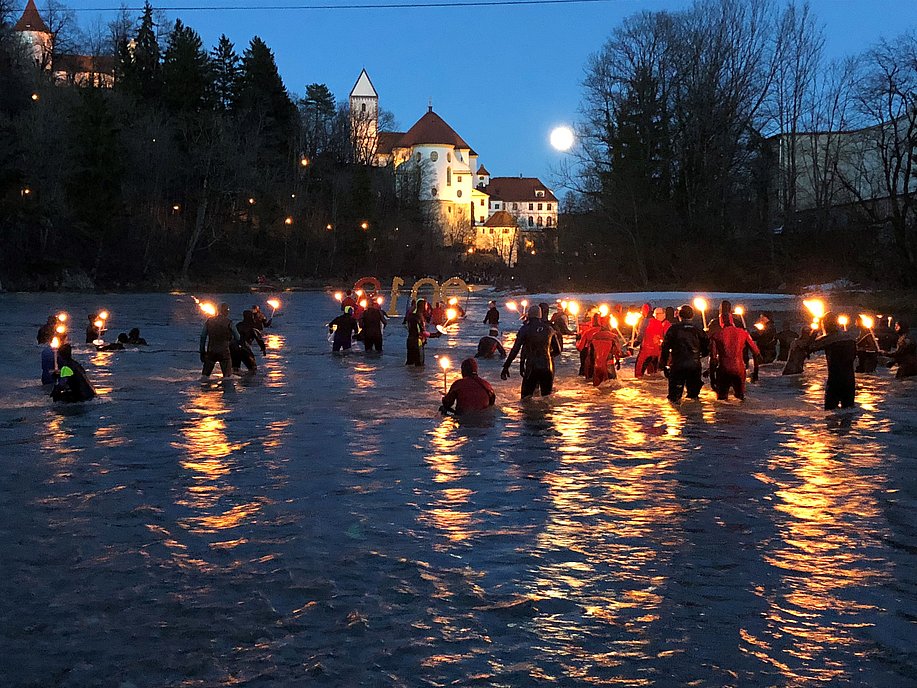 Einmalig im Allgäu ist das traditionelle Neujahrs-Fackelschwimmen in Füssen.