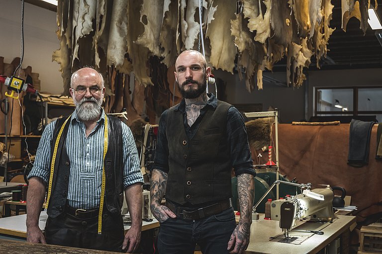 Wie der Vater so der Sohn, heißt es im Volksmund. Bei Klaus und Daniel Bensmann aus Bad Hindelang stimmt das auf den ersten Blick nicht. Daniel Bensmann (31) ist Tätowierer in seinem eigenen Atelier "Hütmôlar". Er zeigt offen seine Körperkunst. Sein Vater, Klaus Bensmann (61), ist von Beruf Lederschneider und stellt in seiner Werkstatt "Leder Klaus Bensmann" sowohl traditionelle Tracht als auch moderne Bekleidung her.